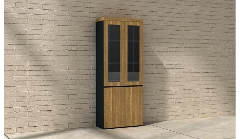 ארון מנהל דגם דפנה MDF מצופה פורניר אמיתי משולב צבע אקבה דלתות זכוכית שקופה מחוסמת מידה 80/40/200H צבעים: אגוז בהיר משולב שחור או לבן אגוז כהה משולב שחור