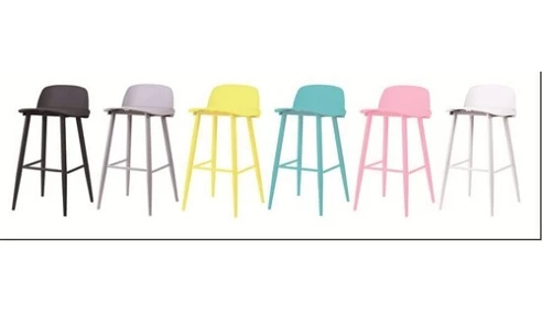 כיסא בר C5201 כיסא בר מעוצב גב פלסטיק נמוך רגל מתכת בגוון המושב גוון: צהוב, שחור, ורוד, אפור, כחול, לבן גובה 65 ס"מ