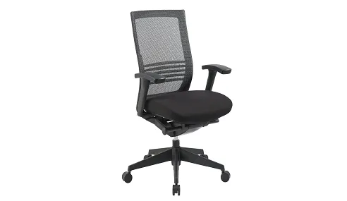 כסא מנהל דגם C1249 גב נמוך מנגנון סינכרוני עם מושב החלקה גב רשת שחור ומושב בד שחור משענות ידיים מתכווננות 3D רגל ניילון שחור