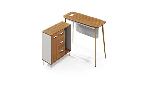 מערכת מנהל סינגריה כולל שלוחה ניידת וקושרת רגל מעוצבת מידות: 160, 180, 200 גוון עץ טבעי + לבן