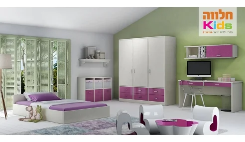 חדר בעיצוב צבעוני וצעיר, המורכב מיחידות רהיטים מודולריות אותן ניתן לשלב במגוון צורות וכך להתאים באופן מושלם לצרכים משתנים של הילד הגדל.