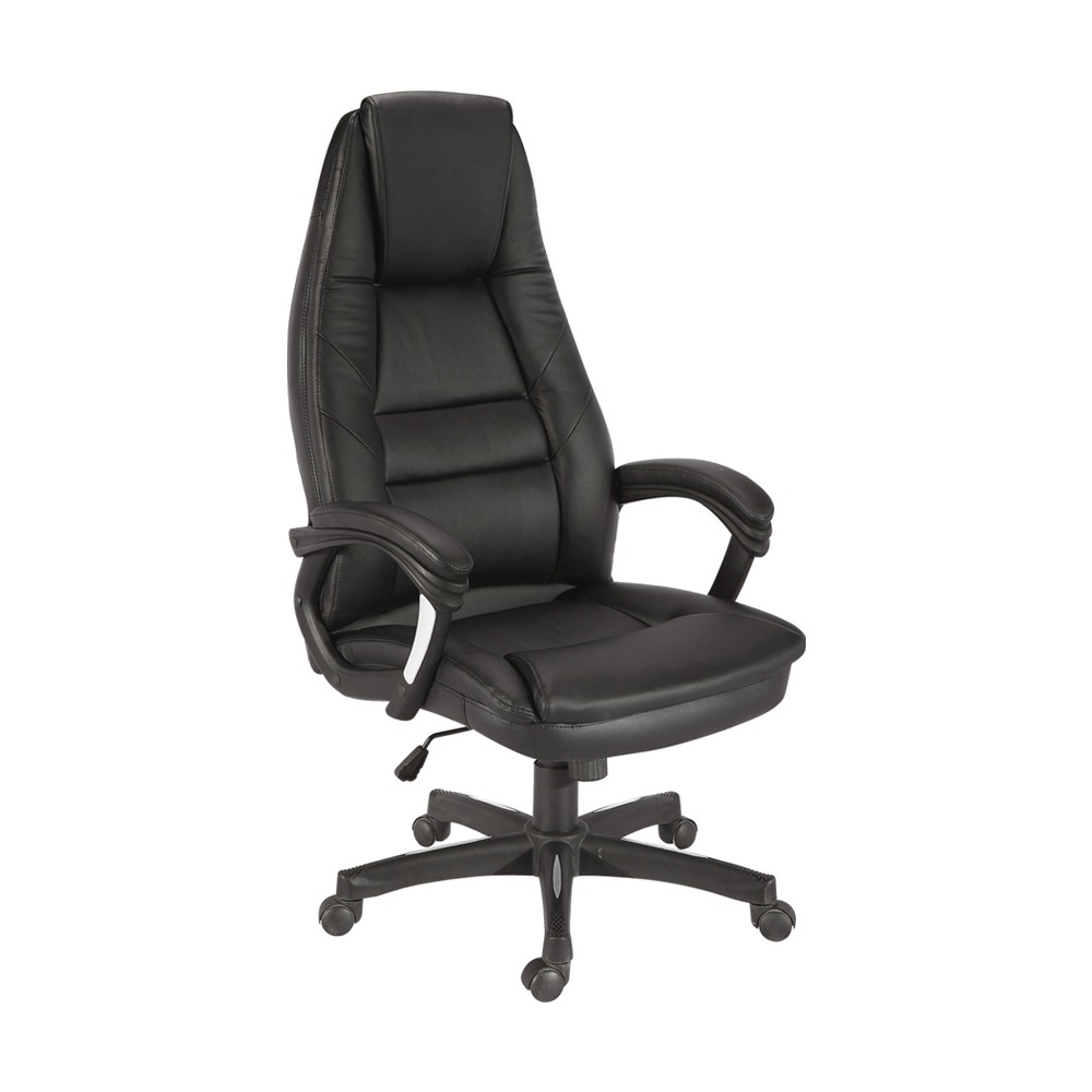כסא מנהל דגם C1010 ריפוד דמוי עור שחור PU מנגנון סינכרוני רגל ניילון שחור גב גבוה
