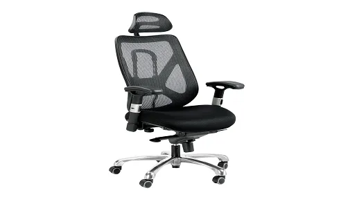 כסא מנהל דגם C1235 גב גבוה מנגנון סינכרוני ריפוד בד רשת שחור משענות ידיים מתכוננות רגל אלומיניום משענת ראש מתכוננת