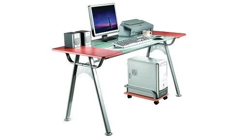 שולחן מחשב מטר פלטה מלמין שילוב זכוכית רגלי מתכת מידה 140/70/76H