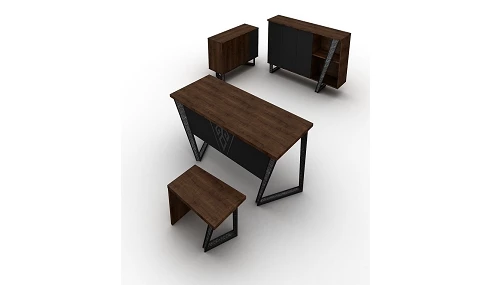 שולחן מנהל טיאסטו יוקרתי מידה 220/90/75H גוון אגוז כהה, רגל שחורה מעוצבת